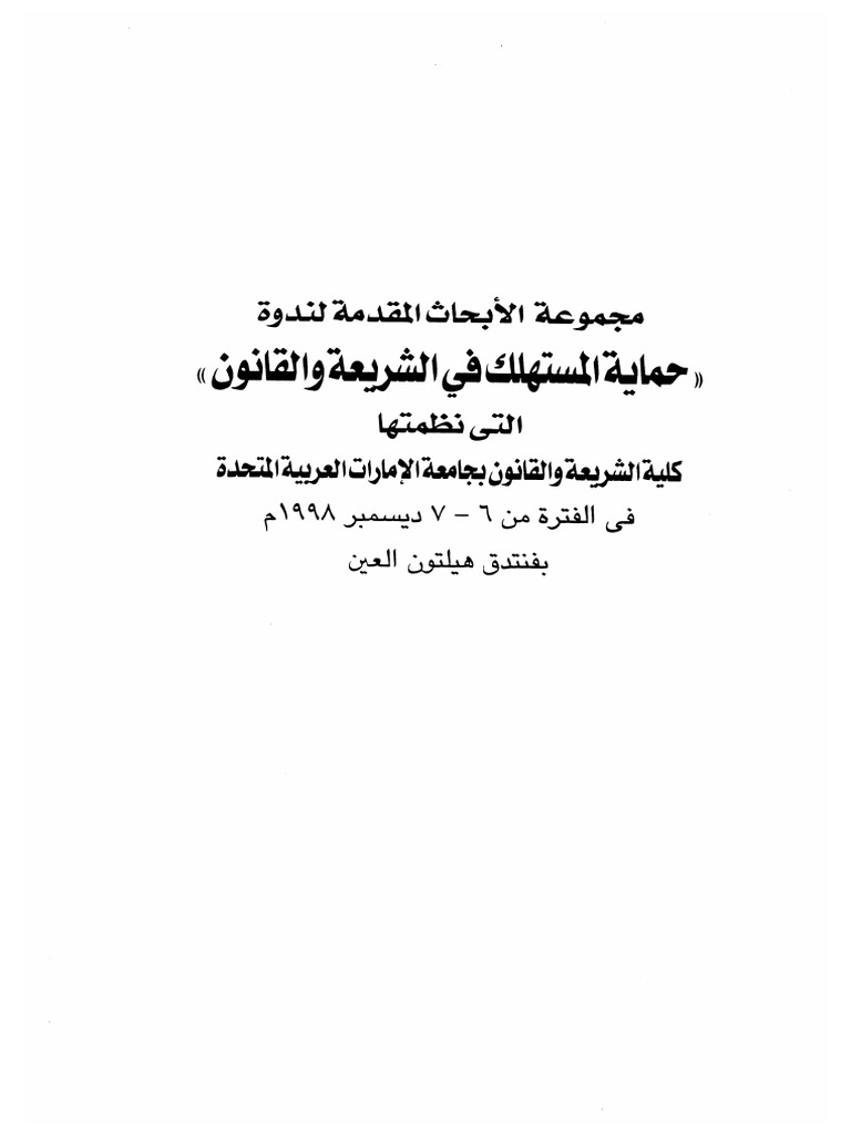 أبحاث ندوة حماية المستهلك بين الشريعة والقانون Pdf