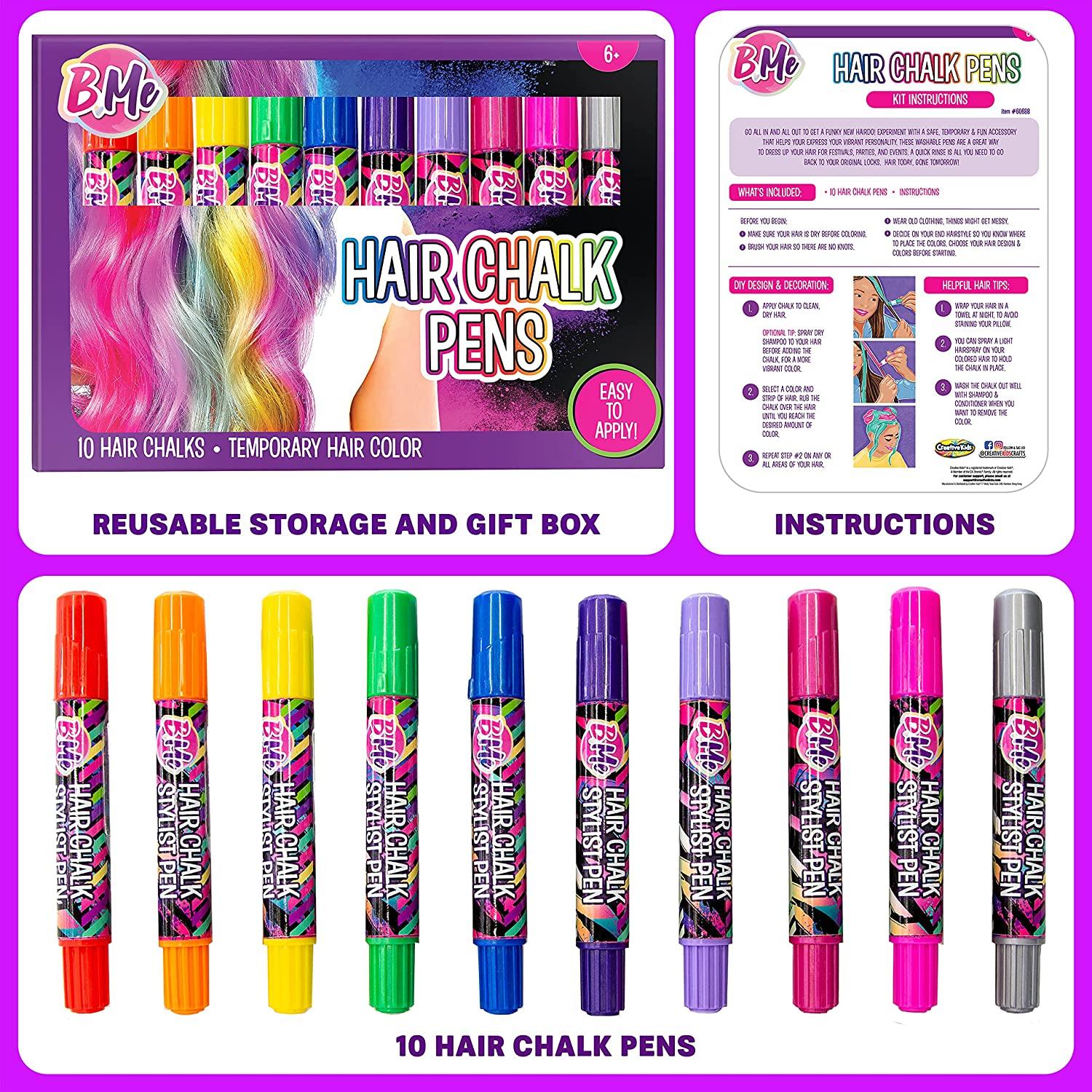 Hair Chalk Pens Set Creative Hair Chalk Stylist Salon For Girls Temporary Hair Color Kit With 10 Rainbow Hair Chalk Pens Festival Party Dress Up Washable Hair Dye Set For Kids Age 6